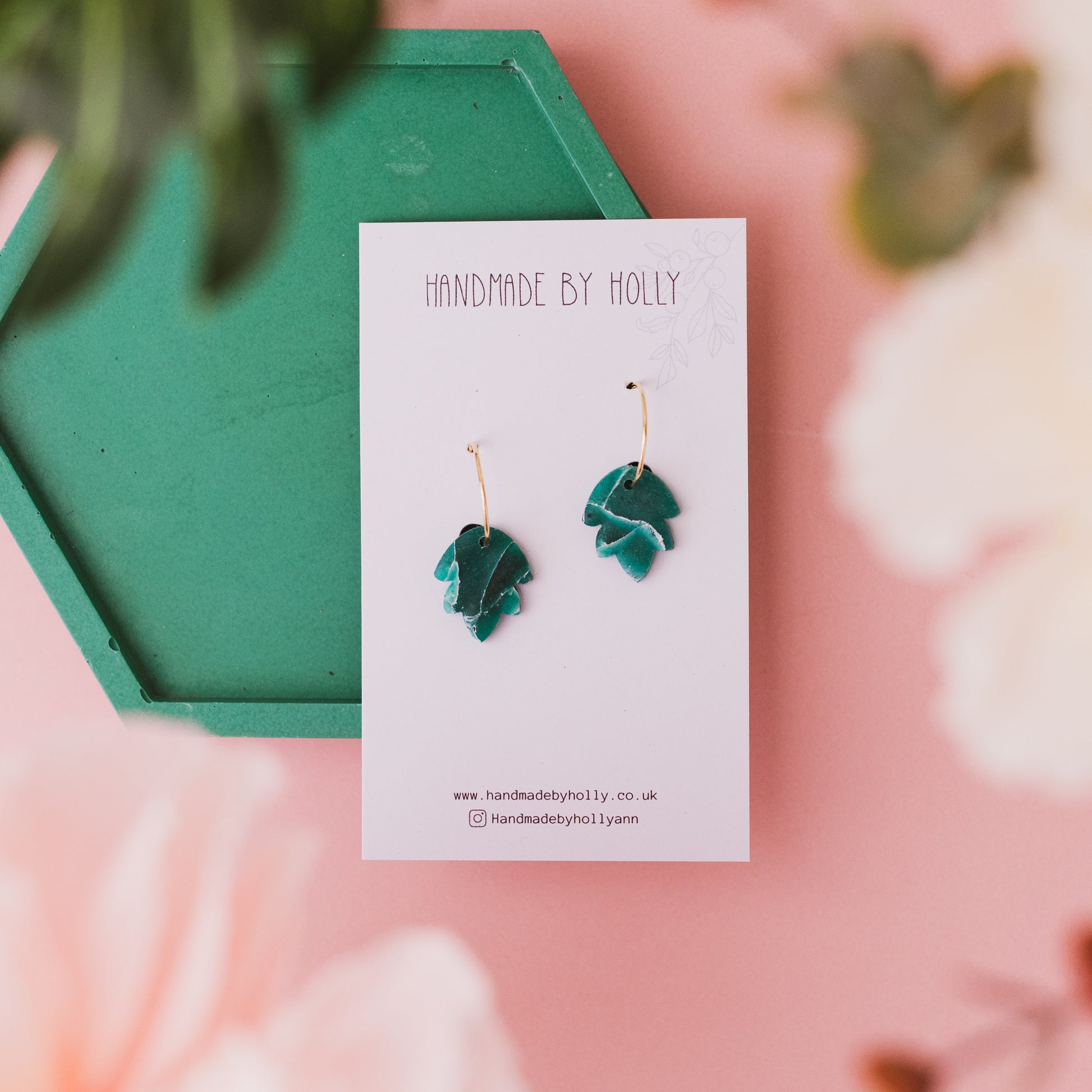 Jade leaf hoop earring. The perfect treat for all you nature lovers!