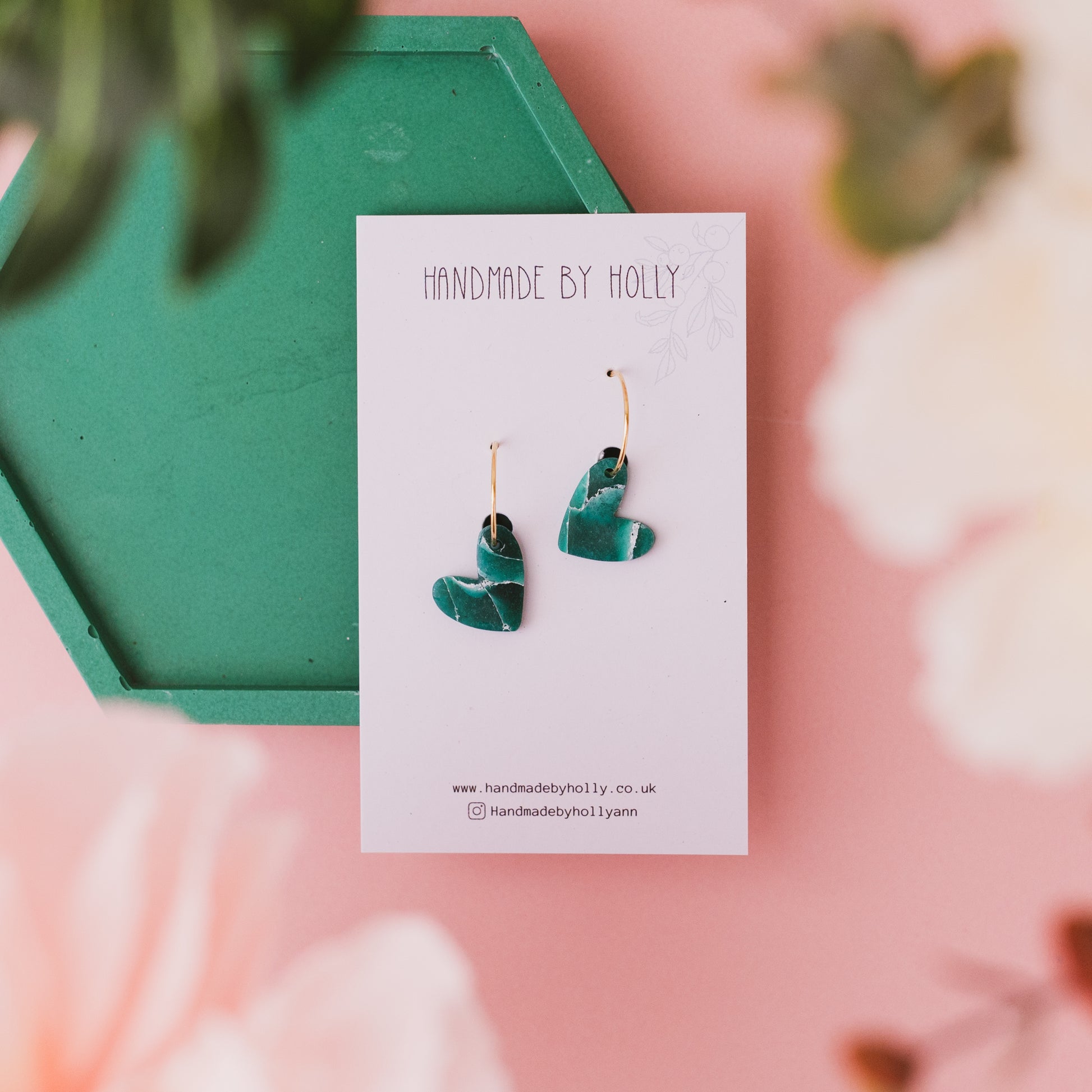 Cute and dainty Jade heart hoop earrings. The perfect entry level size if you haven't worn big earrings before!
